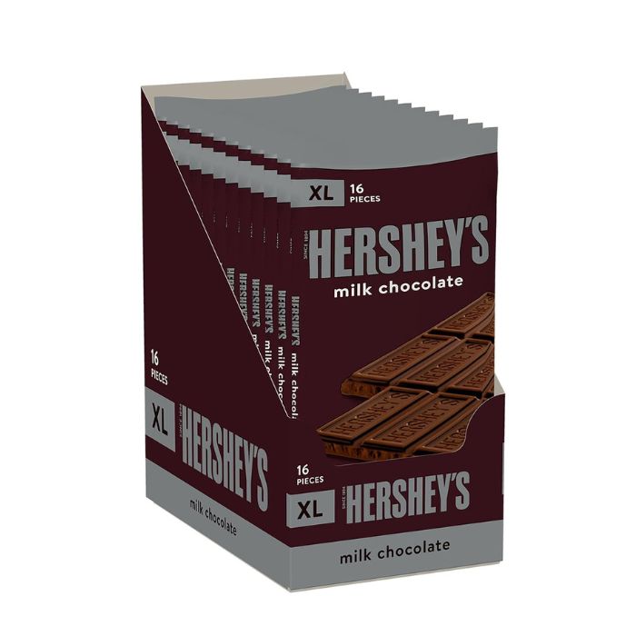 - Contains twelve (12) 4.4-ounce, 16-piece HERSHEY’S Milk Chocolate XL Candy Bars in a bulk box.